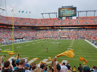 Lucky for Kassie she's not there alone. Our cousin Paul and his wife Tasha stay down there as well, so that's nice to have family there even if it's just the 2 of em. Pauls been with the Dolphins the past 4 years so my dads always flying down for the games. He got us tickets for their game verse the Pittsburgh Steelers. Now..now.. if you know anything about real Steeler fans you know that it runs generations deep. We're pretty big Steeler fans (my sister and mother and mothers side..etc...etc), but since Pauls been at the Dolphins, I've developed a great love for em. Besides....half the Utes get drafted there, so I gotta love em. But no way in heck does that take me away from being a Steeler fan, it just makes it awkward when cheering at the game, because everyone around me is confused as to who I'm really cheering for. haha...